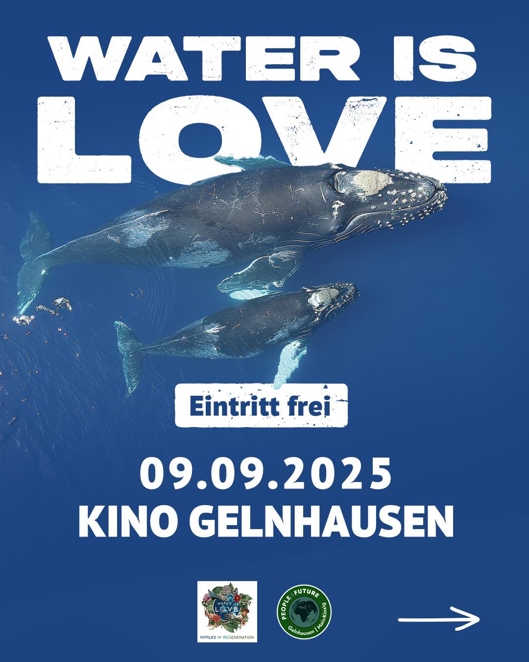 Am 09.09.2025 um 20:30 Uhr zeigt das Kino Gelnhausen im Rahmen der Filmkunst den Film 'Water is Love'. "Dieser bewegende, neue Dokumentarfilm zeigt, was Wasser mit Klimaschutz zu tun hat. Warum Wasser Leben bedeutet. Wie Wasser unser (liebevoller) Lehrmeister für künftig gutes Leben sein kann. Und wie wir alle gemeinsam Wasserkreisläufe wieder in Gang setzen können." freut sich Lea Schneider, die die Moderation des Abends übernimmt, auf den Film.